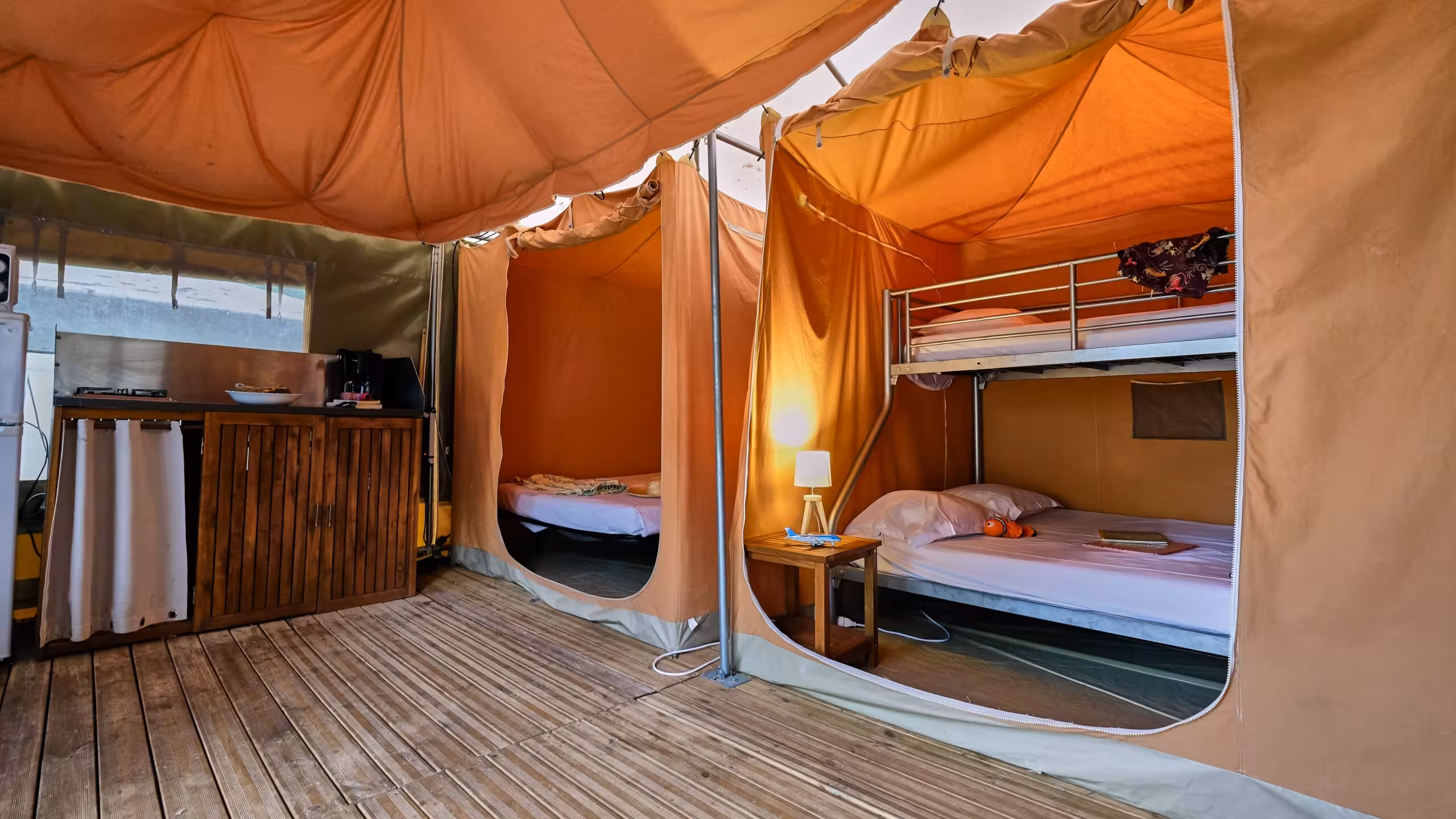 The perfect compromise between a tent and a mobile home, the canvas bungalow is THE economical solution for your vacation rental in Provence, but above all it’s the perfect balance between simplicity and convenience, offering a traditional camping experience without sacrificing little touches of comfort.