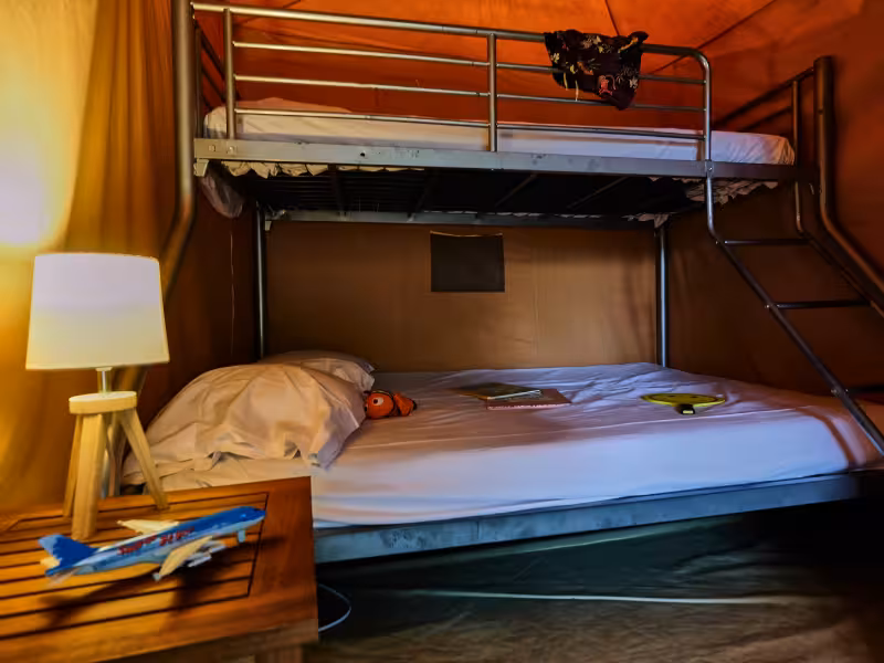 Do you love camping but are tired of the logistics? The Navajo tent is the perfect solution! With 3 bedrooms with real beds and a fully-equipped kitchenette, you can enjoy a comfortable stay while retaining the authenticity of traditional camping. Please note: The accommodation has no sanitary facilities, so please use the campsite sanitary facilities.